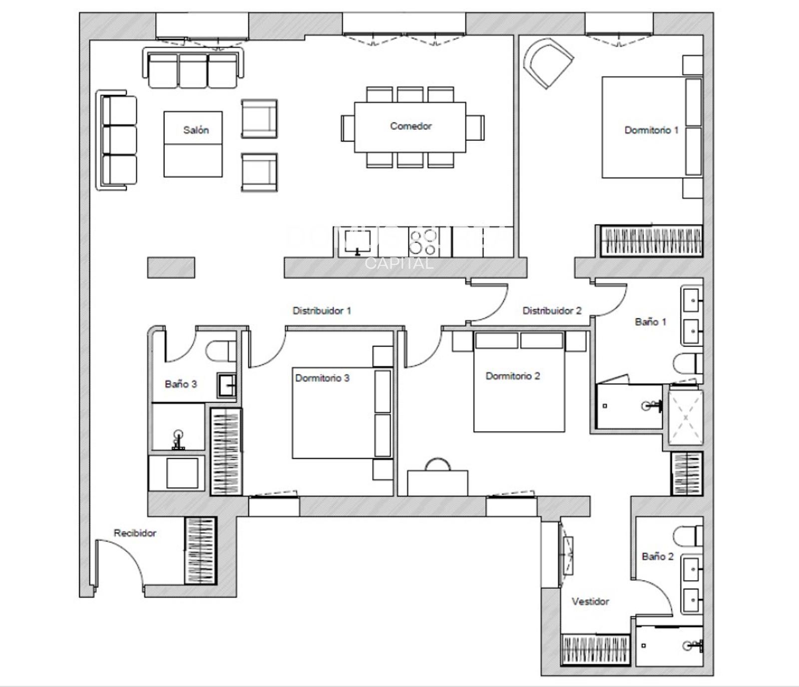 Flat for sale in Madrid, with 1,733 ft2, 3 rooms and 3 bathrooms and Storage room.