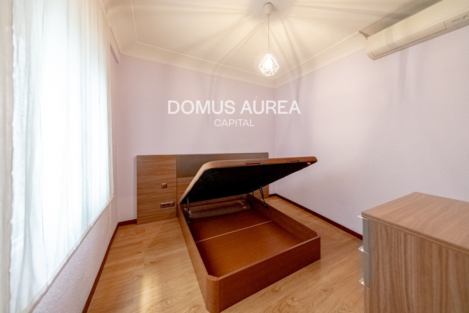 Domus Aurea Capital presenta este piso con terraza de 2 habitaciones con vistas a Plaza de Olavide en el distrito de Chamberí.