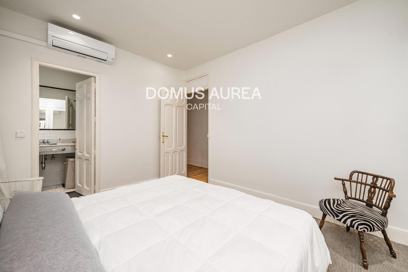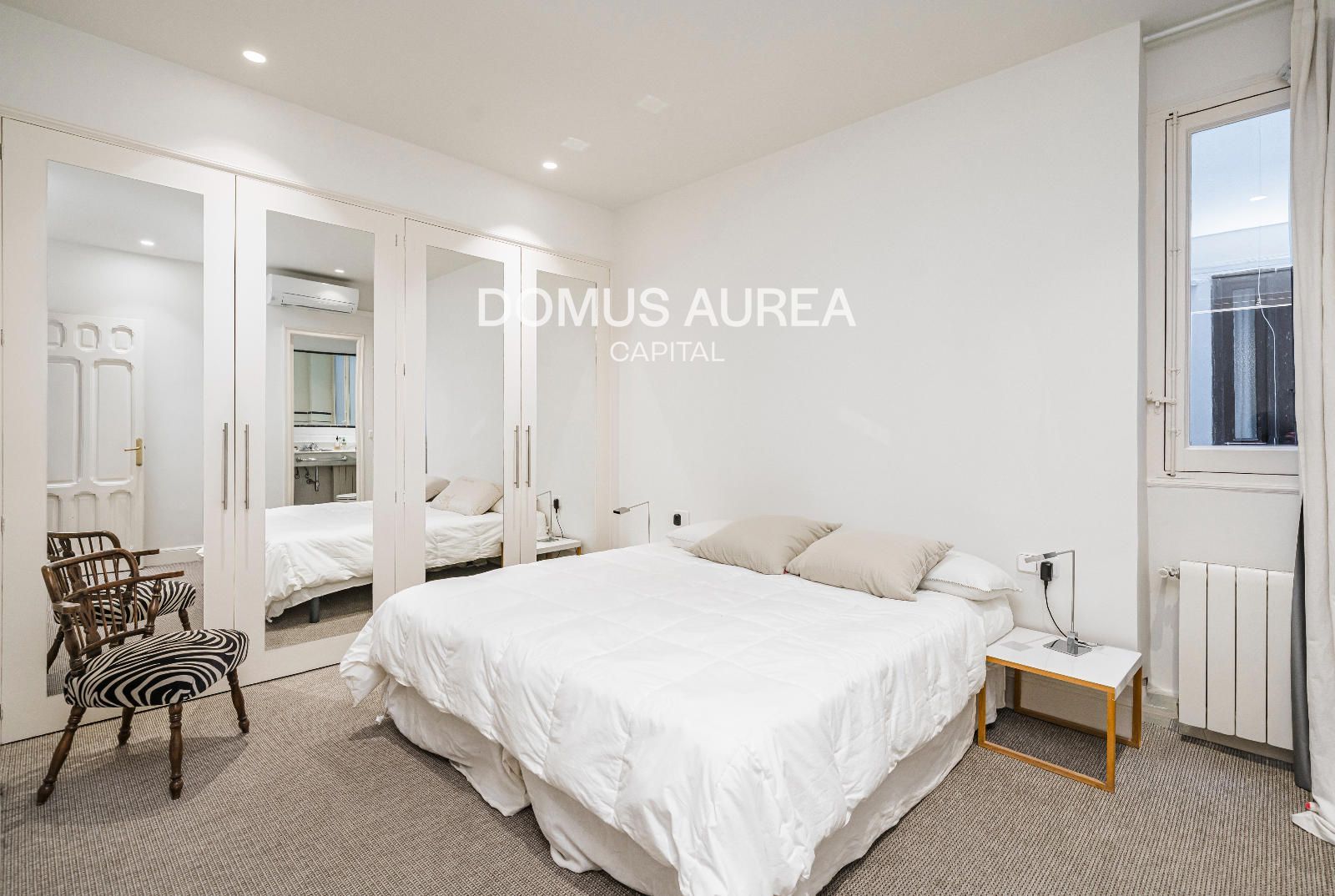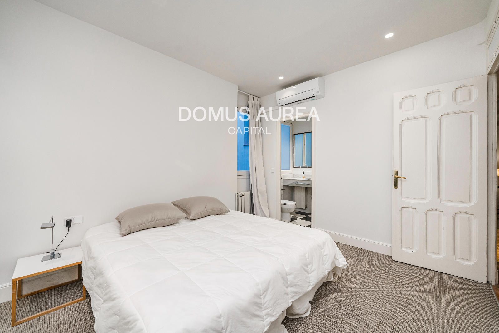 Vivienda exterior de 160m2 situada en la primera planta de un edificio clásico de 1930, se distribuye en hall de entrada, amplio saló-comedor con vistas al exterior, cocina independiente equipada con todos los electrodomésticos y aseo de cortesía. En la zona de noche encontramos un dormitorio principal con balcón a la calle y con una sala adicional como despacho o tv room, vestidor y baño en suite, y además un segundo dormitorio con baño en suite.