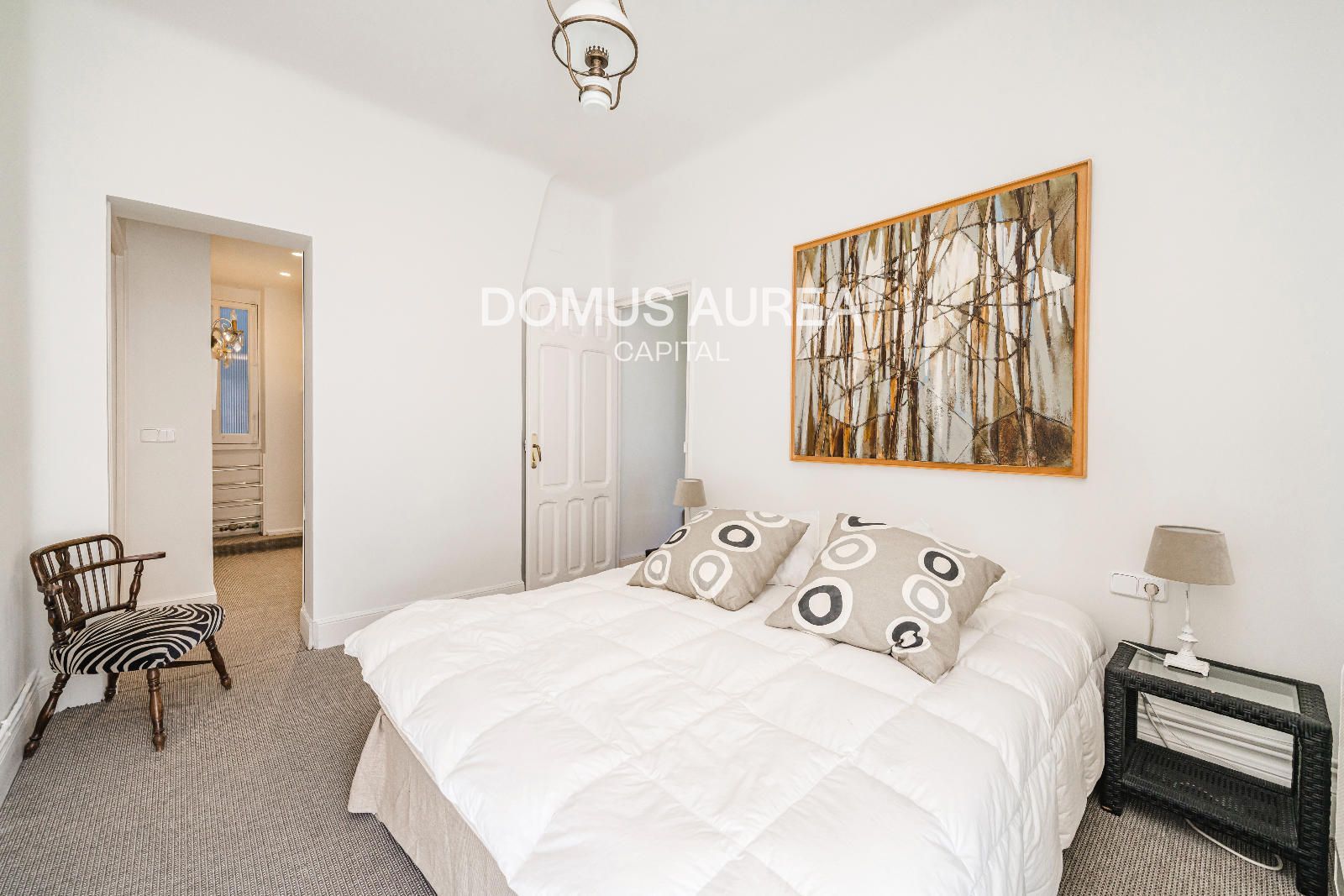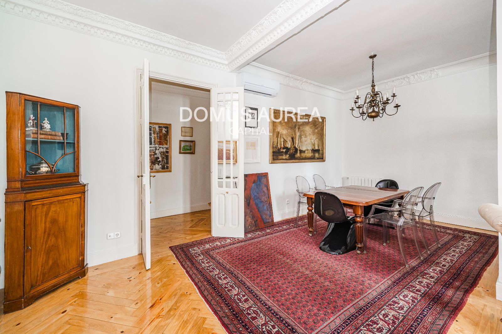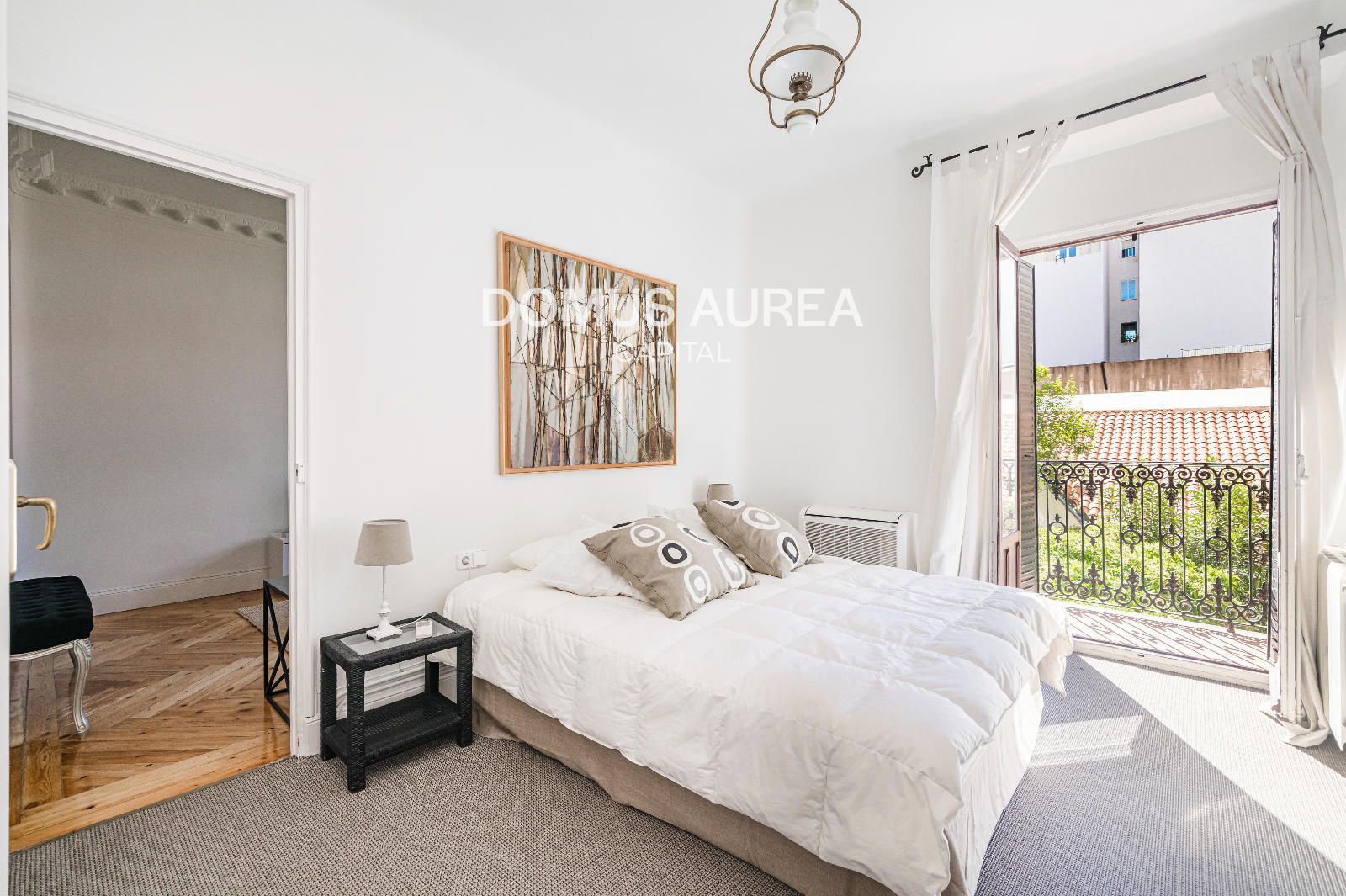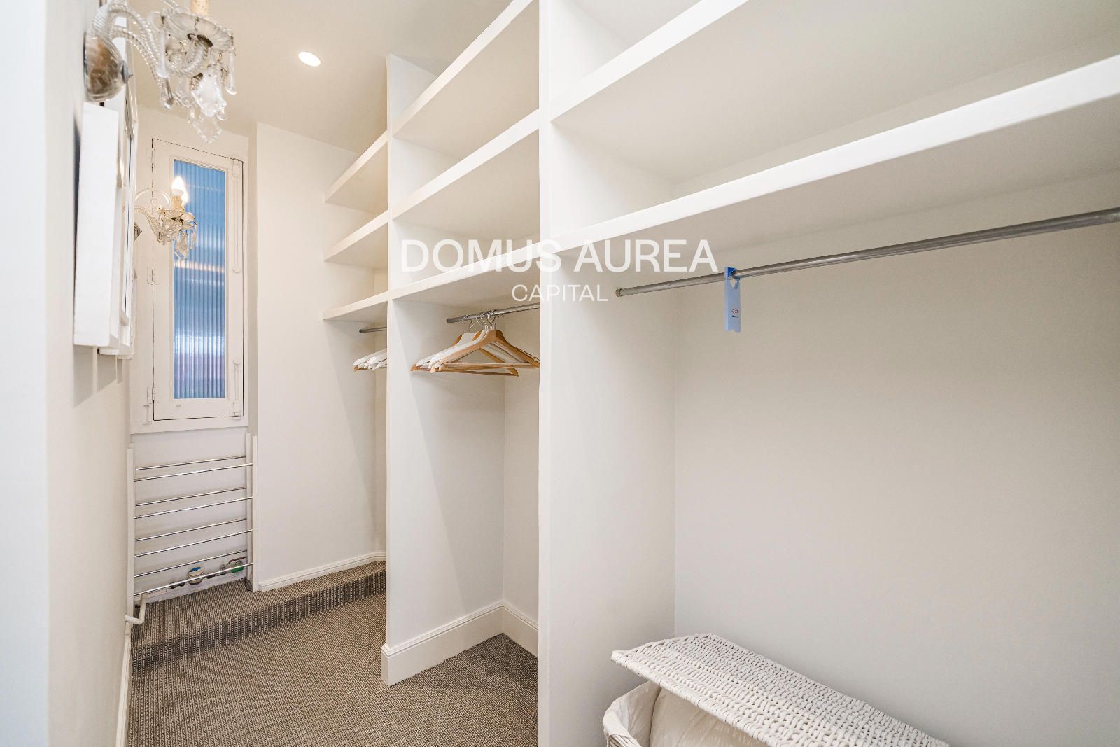 Vivienda exterior de 160m2 situada en la primera planta de un edificio clásico de 1930, se distribuye en hall de entrada, amplio saló-comedor con vistas al exterior, cocina independiente equipada con todos los electrodomésticos y aseo de cortesía. En la zona de noche encontramos un dormitorio principal con balcón a la calle y con una sala adicional como despacho o tv room, vestidor y baño en suite, y además un segundo dormitorio con baño en suite.