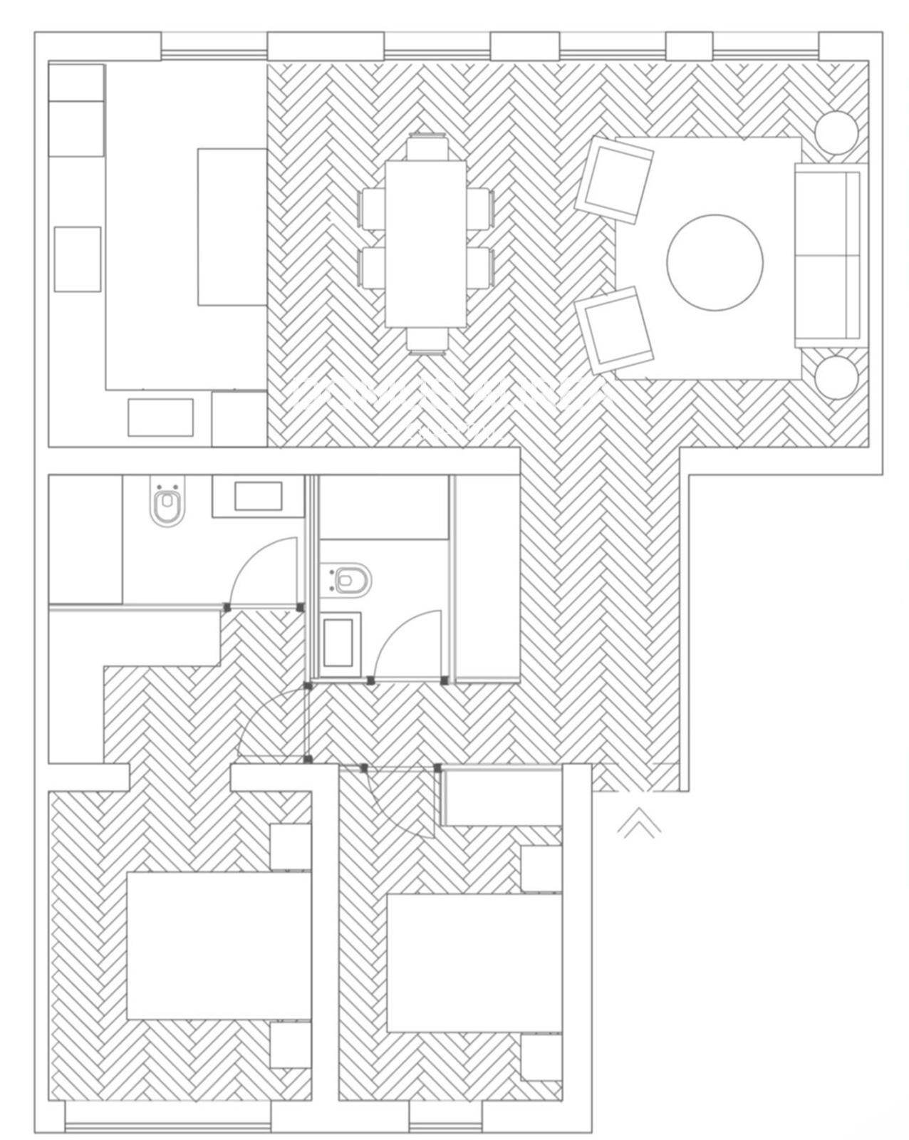 Situado en una tercera planta exterior de una finca clásica, esta vivienda de 103m3 destaca por su salón-comedor, un espacio amplio que se abre a la calle a través de cuatro grandes ventanales, cocina abierta completamente equipada, dos dormitorios dobles, el principal con un práctico vestidor y baño en suite, y un segundo baño completo que da servicio al resto de la vivienda.