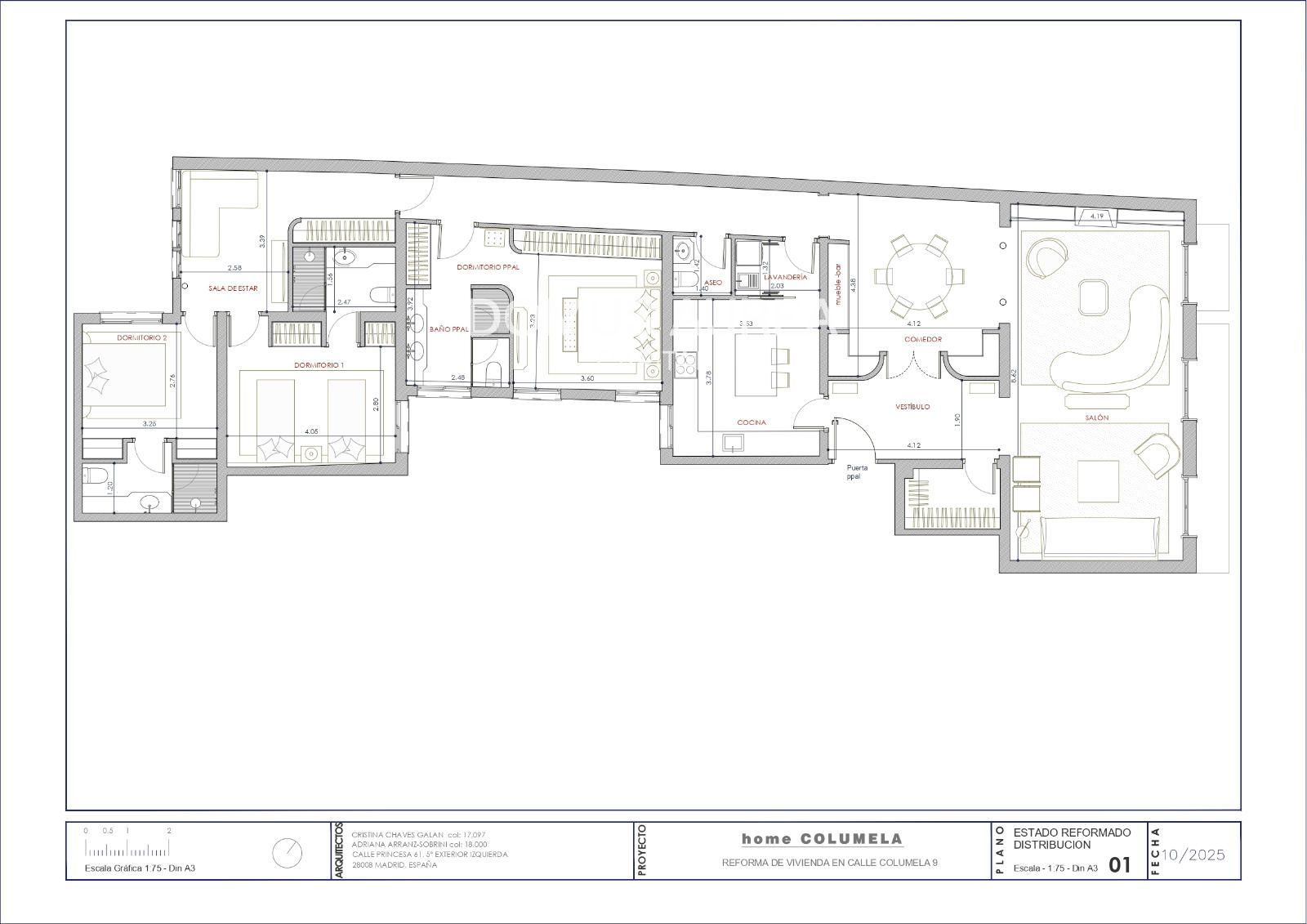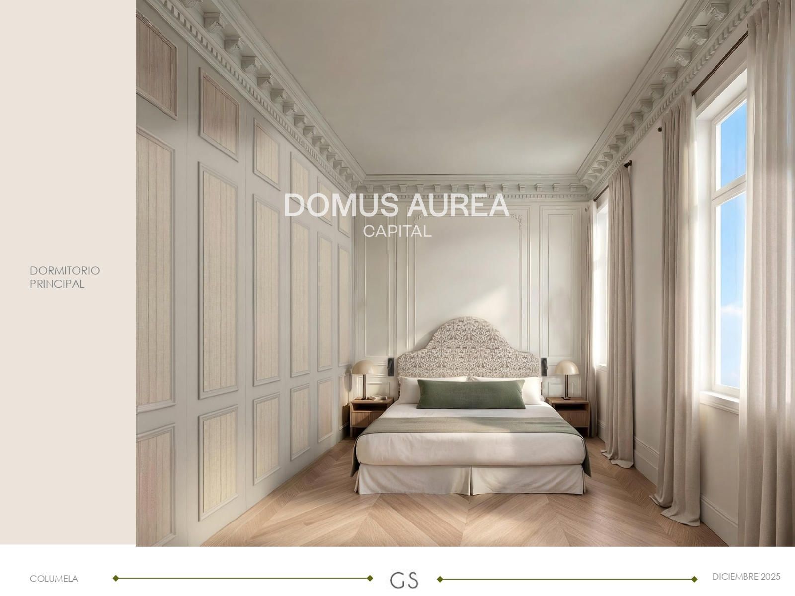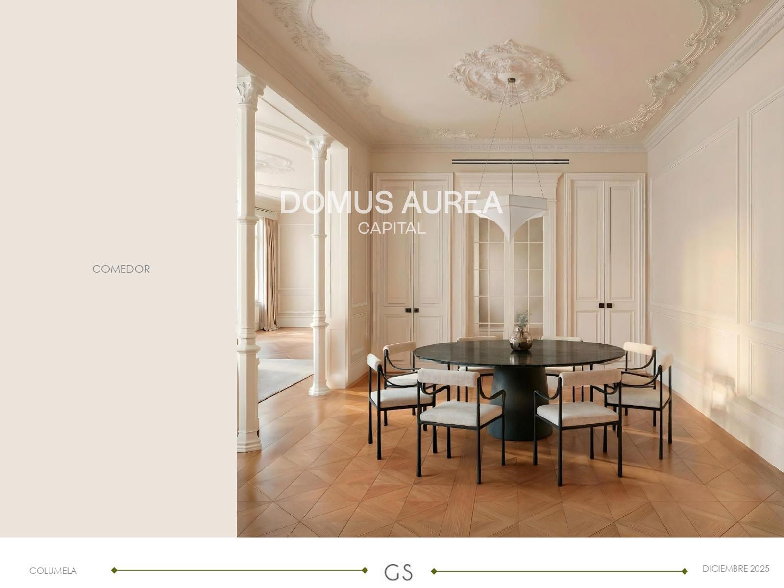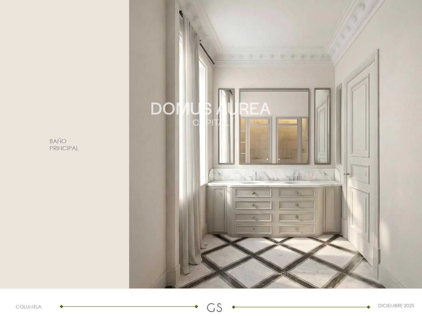 El proyecto de interiorismo está firmado por el reconocido estudio Galán & Sobrini, combinando diseño contemporáneo con la esencia arquitectónica clásica del edificio. La distribución contempla un hall de entrada con gran armario gabanero, una espectacular zona social con tres balcones de gran altura y orientación sur, comedor con columnas originales y mueble bar, cocina independiente con zona de lavado y baño de cortesía. La zona de descanso ofrece tres dormitorios grandes dobles en suite, todos con balcones a patios, además de un acogedor TV room que puede convertirse en una cuarta habitación opcional.