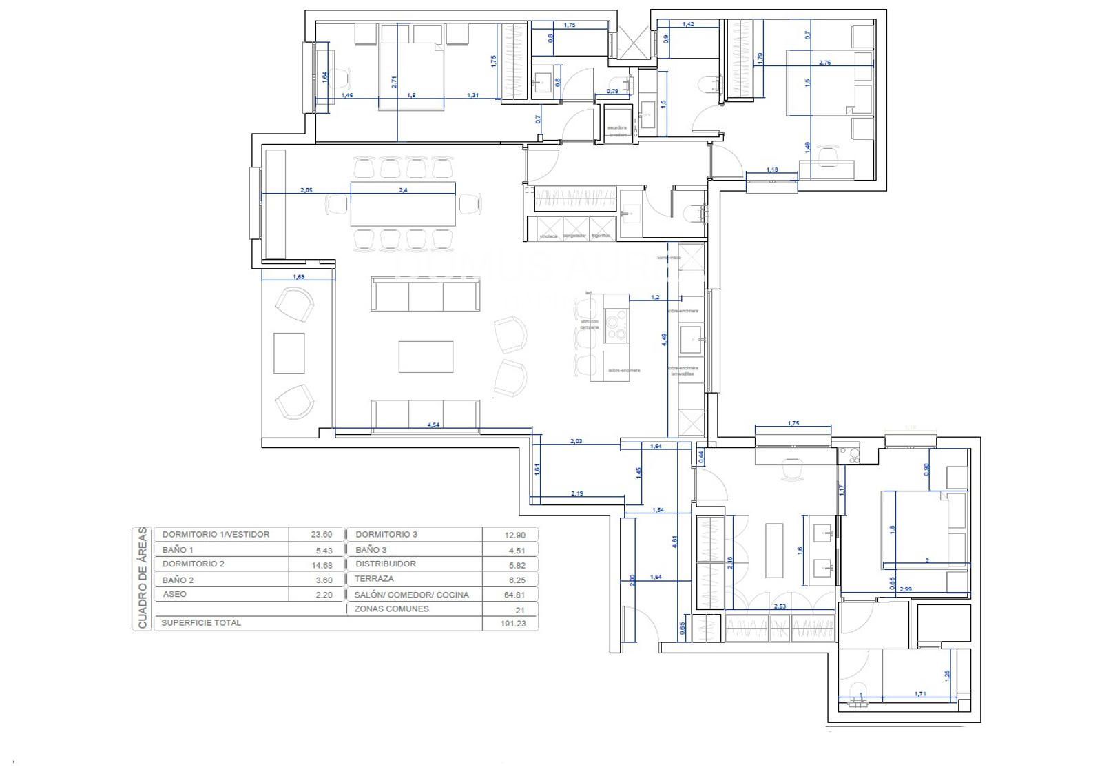 La zona de día se compone de hall de entrada con bonito y espacioso recibidor que da acceso a la amplia zona social que se configura en salón, comedor y amplia cocina panelada en nogal con una gran isla central y electrodomésticos Bosch, además de la terraza de 6m2 , zona de noche compuesta por dormitorio principal con un amplio baño en suite, tocador y vestidor a medida, además de otros dos dormitorios dobles de gran tamaño con baño en suite cada uno, y un aseo de cortesía para visitas.