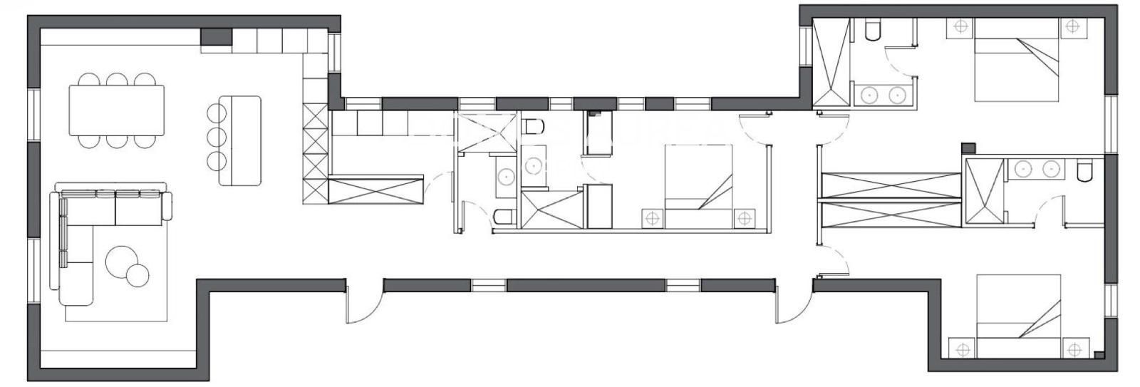 Ubicada en la séptima planta, última del edificio, la vivienda disfruta de una privilegiada altura ofreciendo la entrada de luz natural en todas sus estancias. Sus 198m2 recién reformado se distribuyen en un amplio salón-comedor con cocina integrada e isla central, un práctico cuarto de lavandería y tres dormitorios dobles con armarios empotrados vestidos y baños en suite, además de un aseo de cortesía.